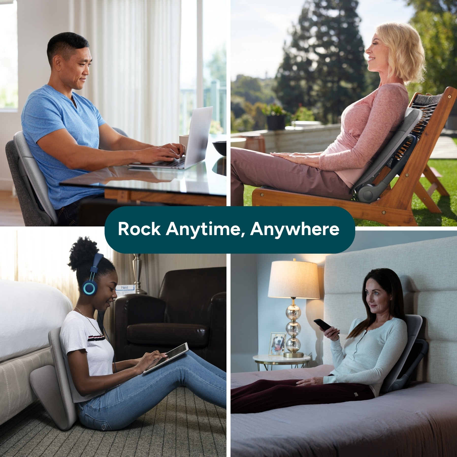 Our patented, portable Ready Rocker instantly converts almost any space (bed, sofa, plane seat, tree, and more) into a rocker so you can rock anywhere, anytime! This latest model is our lightest rocker at just 5 lbs, it folds down flat, and is designed to fit BOTH deep and shallow seating with two rocking positions for maximum comfort.